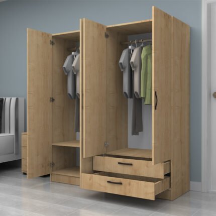 Original price was: 460,00 €.390,00 €Η τρέχουσα τιμή είναι: 390,00 €.Ντουλάπα ρούχων Victoria Megapap τετράφυλλη με συρτάρια χρώμα φυσικό οξιάς 200x60x181εκ.