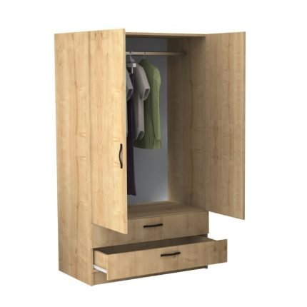 Ντουλάπα ρούχων Victoria Megapap δίφυλλη με συρτάρια χρώμα φυσικό οξιάς 100x60x181εκ.