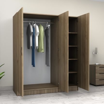 Original price was: 615,00 €.500,00 €Η τρέχουσα τιμή είναι: 500,00 €.Ντουλάπα ρούχων Victoria Megapap τρίφυλλη με πατάρι χρώμα καρυδί 150x60x240εκ.