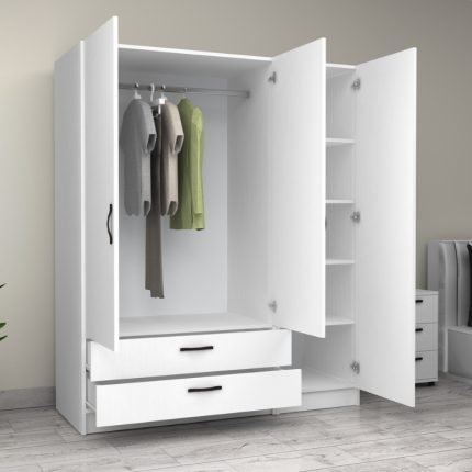 Original price was: 413,00 €.350,00 €Η τρέχουσα τιμή είναι: 350,00 €.Ντουλάπα ρούχων Victoria Megapap τρίφυλλη με συρτάρια χρώμα λευκό 150x60x181εκ.