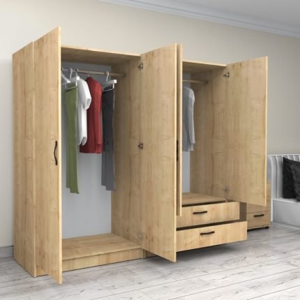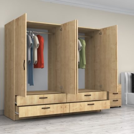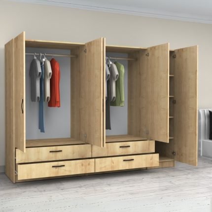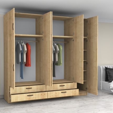 Original price was: 460,00 €.390,00 €Η τρέχουσα τιμή είναι: 390,00 €.Ντουλάπα ρούχων Victoria Megapap τετράφυλλη με συρτάρια χρώμα φυσικό οξιάς 200x60x181εκ.