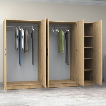 Original price was: 906,00 €.765,00 €Η τρέχουσα τιμή είναι: 765,00 €.Ντουλάπα ρούχων Victoria Megapap εξάφυλλη με πατάρι χρώμα φυσικό οξιάς 300x60x240εκ.