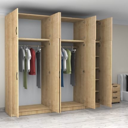Original price was: 570,00 €.480,00 €Η τρέχουσα τιμή είναι: 480,00 €.Ντουλάπα ρούχων Victoria Megapap εξάφυλλη χρώμα φυσικό οξιάς 300x60x181εκ.