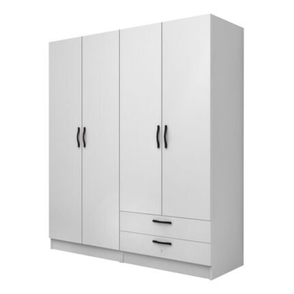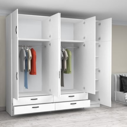 Original price was: 420,00 €.355,00 €Η τρέχουσα τιμή είναι: 355,00 €.Ντουλάπα ρούχων Victoria Megapap τετράφυλλη με συρτάρια χρώμα λευκό 200x60x181εκ.