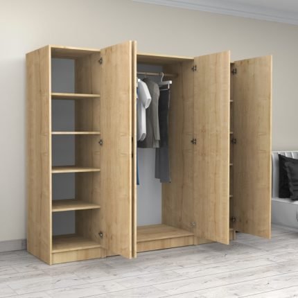 Original price was: 743,00 €.628,00 €Η τρέχουσα τιμή είναι: 628,00 €.Ντουλάπα ρούχων Vivian Megapap πεντάφυλλη χρώμα φυσικό οξιάς 200×51,8×181εκ.
