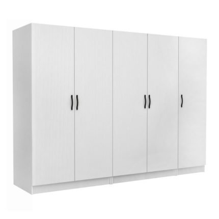 Original price was: 563,00 €.475,00 €Η τρέχουσα τιμή είναι: 475,00 €.Ντουλάπα ρούχων Victoria Megapap πεντάφυλλη χρώμα λευκό 250x60x181εκ.