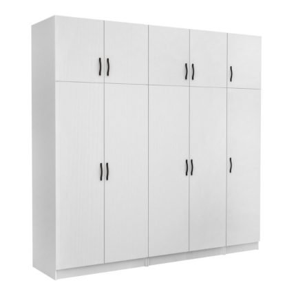 Original price was: 957,00 €.810,00 €Η τρέχουσα τιμή είναι: 810,00 €.Ντουλάπα ρούχων Victoria Megapap πεντάφυλλη με πατάρι και συρτάρια χρώμα λευκό 250x60x240εκ.