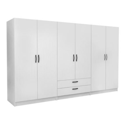 Original price was: 690,00 €.585,00 €Η τρέχουσα τιμή είναι: 585,00 €.Ντουλάπα ρούχων Victoria Megapap εξάφυλλη με συρτάρια χρώμα λευκό 300x60x181εκ.