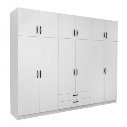 Original price was: 946,00 €.800,00 €Η τρέχουσα τιμή είναι: 800,00 €.Ντουλάπα ρούχων Victoria Megapap εξάφυλλη με πατάρι και συρτάρια χρώμα λευκό 300x60x240εκ.