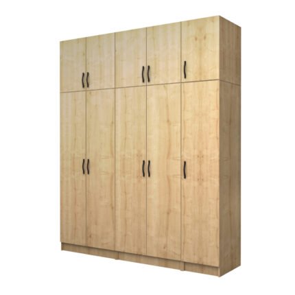 Original price was: 957,00 €.810,00 €Η τρέχουσα τιμή είναι: 810,00 €.Ντουλάπα ρούχων Victoria Megapap πεντάφυλλη με πατάρι και συρτάρια χρώμα φυσικό οξιάς 250x60x240εκ.