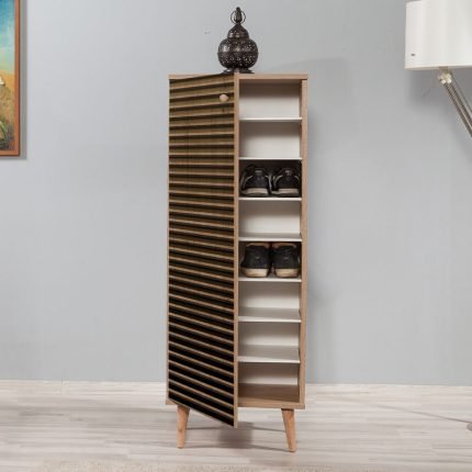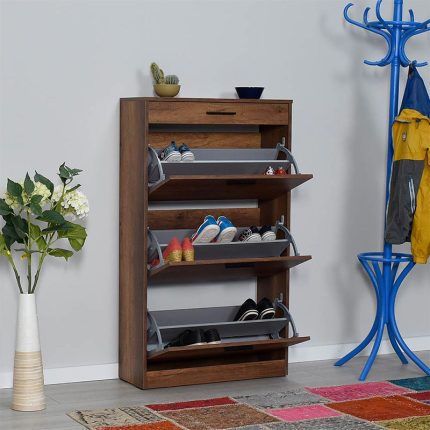 Original price was: 90,00 €.69,00 €Η τρέχουσα τιμή είναι: 69,00 €.Παπουτσοθήκη – Ντουλάπι Manolo Megapap χρώμα καπνιστή καρυδιά 60x38x81,4εκ.