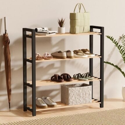 Original price was: 9,00 €.7,50 €Η τρέχουσα τιμή είναι: 7,50 €.Παπουτσοθήκη ξύλινη – πλαστική χρώμα φυσικό – μαύρο 67x18x65εκ.