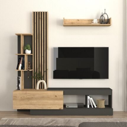 Original price was: 250,00 €.199,00 €Η τρέχουσα τιμή είναι: 199,00 €.Σύνθεση τηλεόρασης Vermont Megapap χρώμα ανθρακί – sepet oak 180x40x193,8εκ.