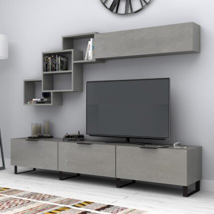 Σύνθεση τηλεόρασης Heydar Megapap χρώμα γκρι σκυροδέματος 210x35x40εκ.