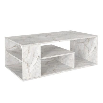 Original price was: 78,00 €.65,00 €Η τρέχουσα τιμή είναι: 65,00 €.Τραπεζάκι σαλονιού Cortado Megapap χρώμα λευκό εφέ μαρμάρου 120x60x39,6εκ.