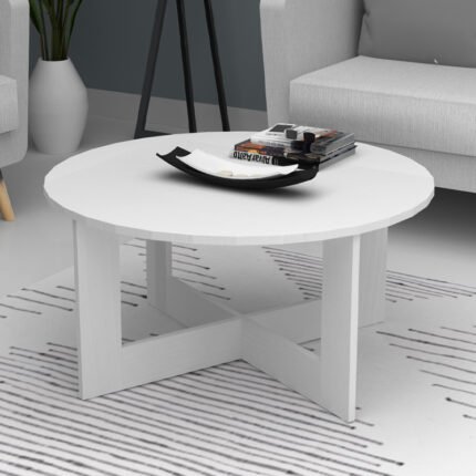 Τραπεζάκι σαλονιού Kati Megapap χρώμα λευκό Ø80×42εκ.