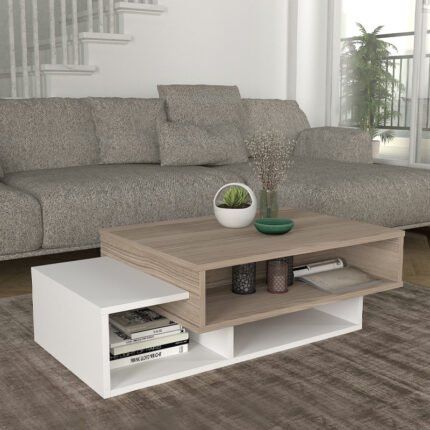 Original price was: 85,00 €.69,00 €Η τρέχουσα τιμή είναι: 69,00 €.Τραπεζάκι σαλονιού Nora Megapap χρώμα λευκό – καρυδί 110×60,6×31εκ.