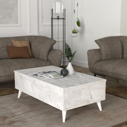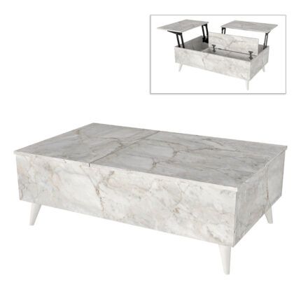 Original price was: 220,00 €.179,00 €Η τρέχουσα τιμή είναι: 179,00 €.Τραπεζάκι σαλονιού Roy Megapap με σερβιτόρο χρώμα λευκό εφέ μαρμάρου 121x69x40εκ.