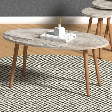 Original price was: 65,00 €.55,00 €Η τρέχουσα τιμή είναι: 55,00 €.Τραπεζάκι σαλονιού + βοηθητικά τραπεζάκια Elips Megapap από μελαμίνη χρώμα εφέ μαρμάρου 90x50x41εκ.