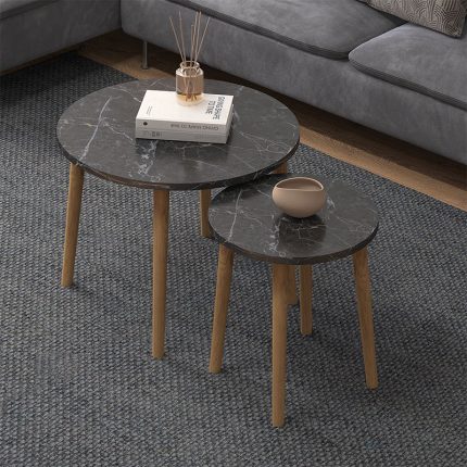 Original price was: 29,00 €.24,90 €Η τρέχουσα τιμή είναι: 24,90 €.Τραπεζάκια βοηθητικά σετ 2 τμχ Roma Megapap χρώμα μαύρο εφέ μαρμάρου Ø34×46εκ.
