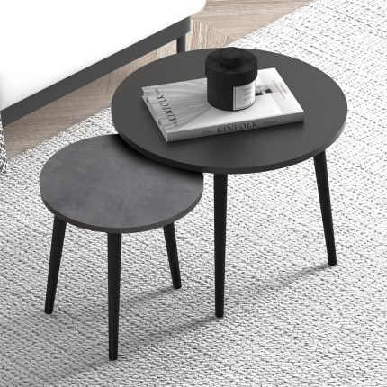 Original price was: 67,00 €.55,00 €Η τρέχουσα τιμή είναι: 55,00 €.Τραπεζάκι σαλονιού σετ 2 τμχ Roma Megapap χρώμα μαύρο – γκρι ρετρό 60x60x46εκ.