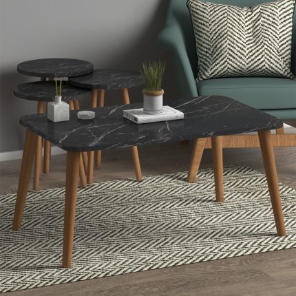 Original price was: 73,00 €.59,00 €Η τρέχουσα τιμή είναι: 59,00 €.Τραπεζάκι σαλονιού σετ 4 τμχ Soul Megapap χρώμα μαύρο εφέ μαρμάρου 90x55x43εκ.