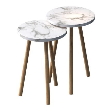 Original price was: 29,00 €.24,90 €Η τρέχουσα τιμή είναι: 24,90 €.Τραπεζάκια βοηθητικά σετ 2 τμχ Roma Megapap χρώμα λευκό εφέ μαρμάρου Ø34×46εκ.