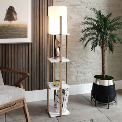 Original price was: 30,00 €.23,90 €Η τρέχουσα τιμή είναι: 23,90 €.Φωτιστικό δαπέδου Rosling Megapap Mdf/ύφασμα Pvc χρώμα μαύρο – λευκό 38x38x140εκ.