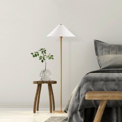 Original price was: 75,00 €.59,90 €Η τρέχουσα τιμή είναι: 59,90 €.Φωτιστικό δαπέδου Clarke Megapap μέταλλο/ύφασμα χρώμα χρυσό/λευκό 38x21x155εκ.