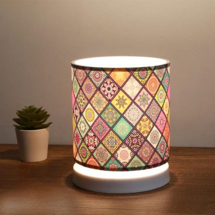 Original price was: 18,00 €.14,90 €Η τρέχουσα τιμή είναι: 14,90 €.Φωτιστικό επιτραπέζιο Hassard Megapap ύφασμα/Mdf χρώμα πολύχρωμο/λευκό 15x16x22εκ.