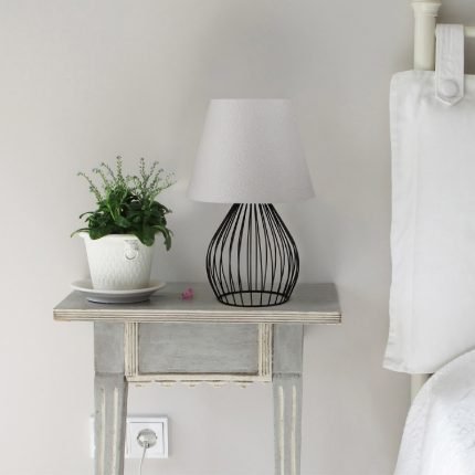 Original price was: 24,00 €.19,90 €Η τρέχουσα τιμή είναι: 19,90 €.Φωτιστικό επιτραπέζιο Aldo Megapap E27 υφασμάτινο – μεταλλικό χρώμα λευκό – μαύρο Φ18×36εκ.