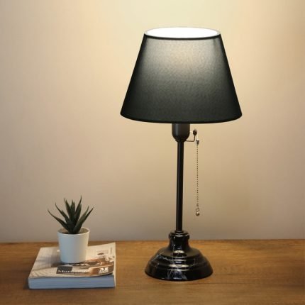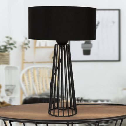 Original price was: 18,00 €.14,90 €Η τρέχουσα τιμή είναι: 14,90 €.Φωτιστικό επιτραπέζιο Hassard Megapap ύφασμα/Mdf χρώμα μαύρο 15x16x22εκ.
