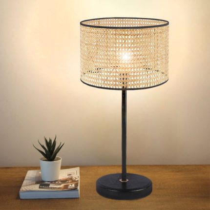 Original price was: 19,00 €.15,90 €Η τρέχουσα τιμή είναι: 15,90 €.Φωτιστικό επιτραπέζιο Idaho Megapap E27 ρατάν – μεταλλικό χρώμα φυσικό – μαύρο Φ24×32εκ.