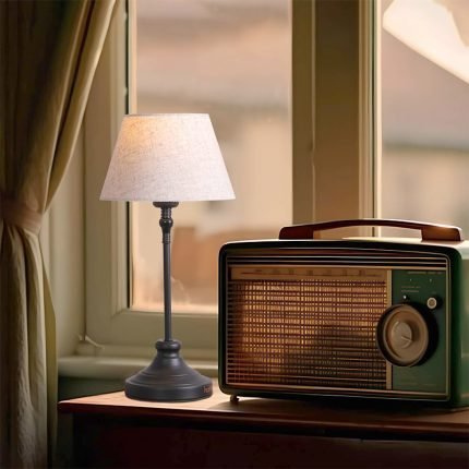 Original price was: 18,00 €.14,90 €Η τρέχουσα τιμή είναι: 14,90 €.Φωτιστικό επιτραπέζιο Hassard Megapap ύφασμα/Mdf χρώμα μπεζ/μαύρο 15x16x22εκ.