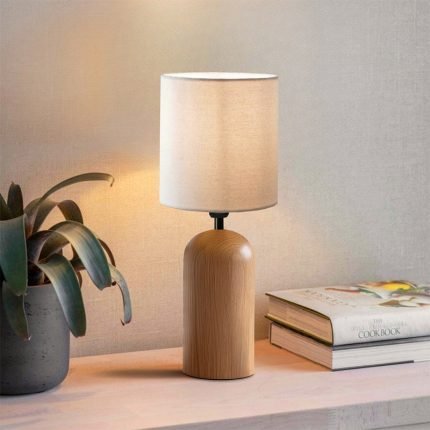 Original price was: 19,00 €.15,90 €Η τρέχουσα τιμή είναι: 15,90 €.Φωτιστικό επιτραπέζιο ξύλινο – πλαστικό χρώμα μπεζ Ø18×34εκ.