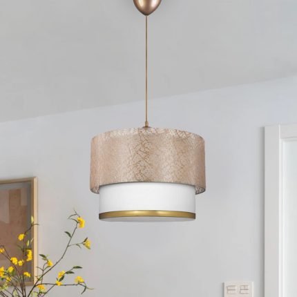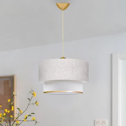 Original price was: 19,20 €.15,90 €Η τρέχουσα τιμή είναι: 15,90 €.Φωτιστικό οροφής Barnhart Megapap υφασμάτινο μονόφωτο χρώμα λευκό/χρυσό 30x20x70εκ.