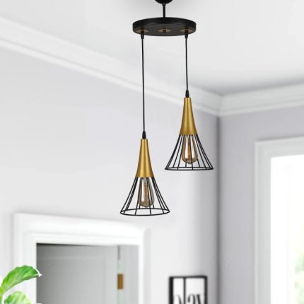 Original price was: 88,00 €.69,90 €Η τρέχουσα τιμή είναι: 69,90 €.Φωτιστικό οροφής Franko Megapap E27 μεταλλικό δίφωτο χρώμα μαύρο – χρυσό 68x36x132εκ.
