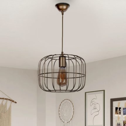 Original price was: 22,00 €.17,90 €Η τρέχουσα τιμή είναι: 17,90 €.Φωτιστικό οροφής Barek Megapap E27 μεταλλικό μονόφωτο χρώμα bronze Φ34×119εκ.
