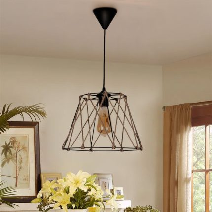 Original price was: 32,00 €.25,90 €Η τρέχουσα τιμή είναι: 25,90 €.Φωτιστικό οροφής Cesa Megapap E27 μεταλλικό – σχοινί τρίφωτο χρώμα μαύρο 45x40x70εκ.