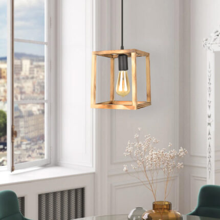 Φωτιστικό οροφής Kubo Megapap E27 ξύλινο μονόφωτο χρώμα φυσικό 18x18x65εκ.