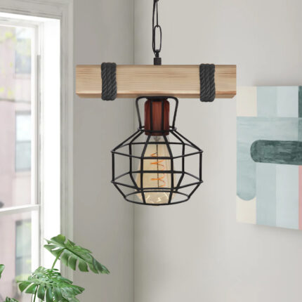 Φωτιστικό οροφής Kale Megapap E27 ξύλινο μονόφωτο χρώμα μαύρο – φυσικό 25x18x65εκ.