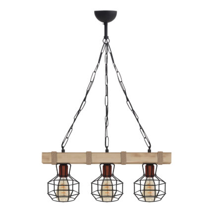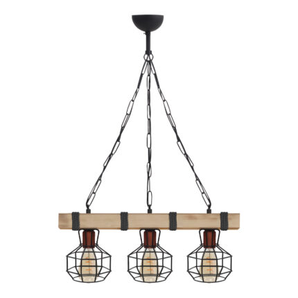 Φωτιστικό οροφής Lumenia Megapap E27 ξύλινο – μεταλλικό τρίφωτο χρώμα φυσικό – μαύρο 50x14x80εκ.