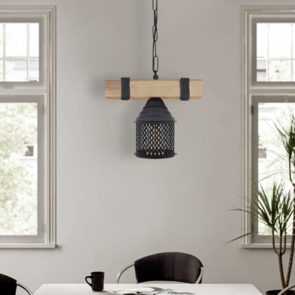 Φωτιστικό οροφής Elora Megapap E27 ξύλινο – μεταλλικό μονόφωτο χρώμα φυσικό – μαύρο 25x13x75εκ.