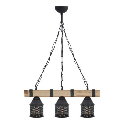 Φωτιστικό οροφής Elora Megapap E27 ξύλινο – μεταλλικό τρίφωτο χρώμα φυσικό – μαύρο 50x13x75εκ.