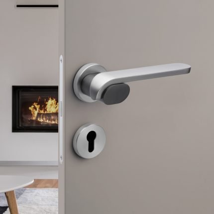 Πόμολα Πόρτας με Ροζέτα Νίκελ Ματ/Χρώμιο Best 07 – Συνδυασμός Αντοχής και Μοντέρνου Design