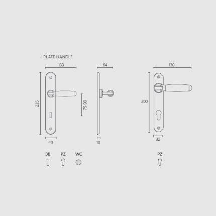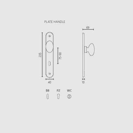 Πόμολο Πόρτας Κασσίτερος No 215 Πλάκα