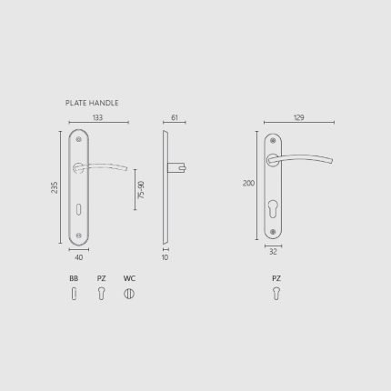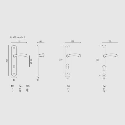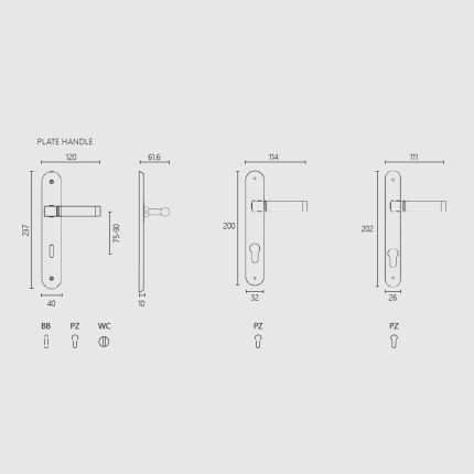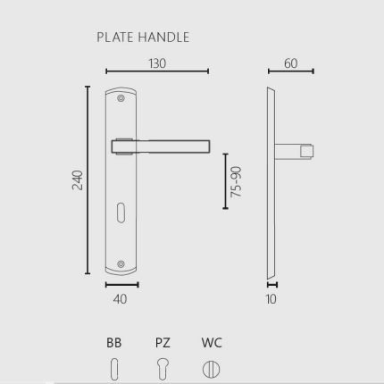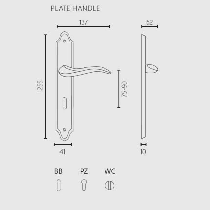 Πόμολο Πόρτας Ανθρακί No 212 Πλάκα