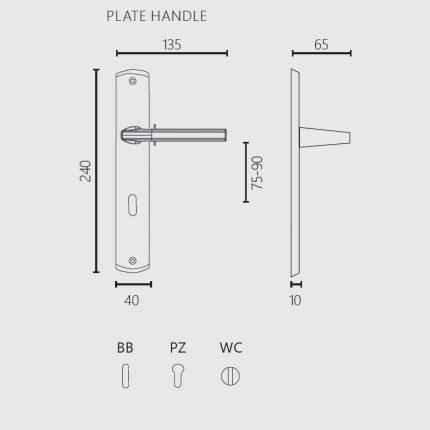 Πόμολο Πόρτας Κασσίτερος No 212 Πλάκα