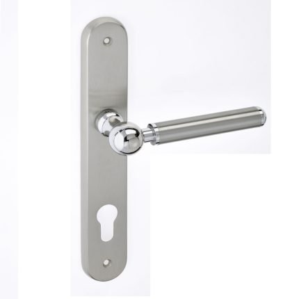 Πόμολο Πόρτας Ορείχαλκου με Πλάκα Νίκελ Ματ/Χρώμιο Best 04 – Κομψό και Μοντέρνο Design