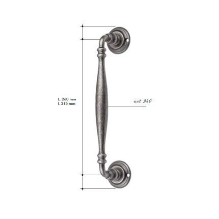 Original price was: 47,00 €.36,00 €Η τρέχουσα τιμή είναι: 36,00 €.Λαβές Εξώπορτας Ζωγομετάλ Μάυρο Πατίνα Ασημί 217